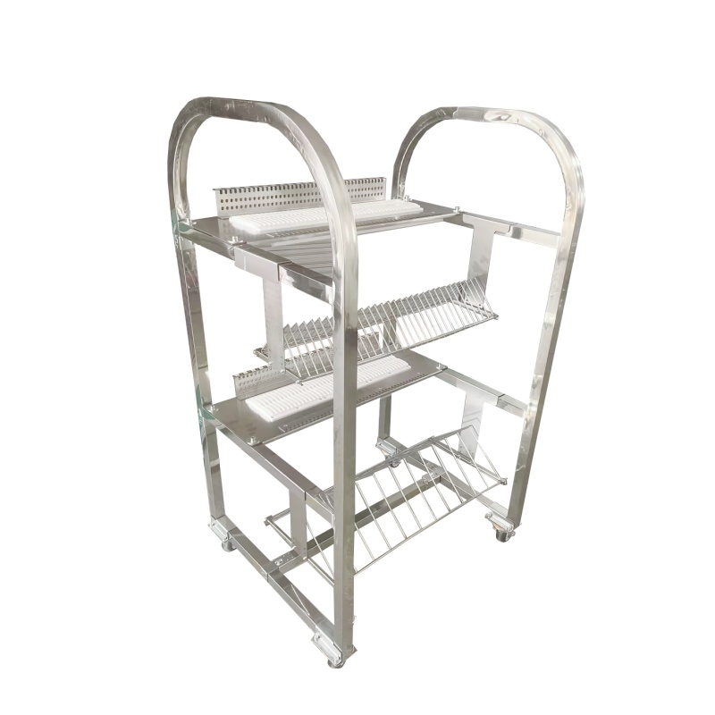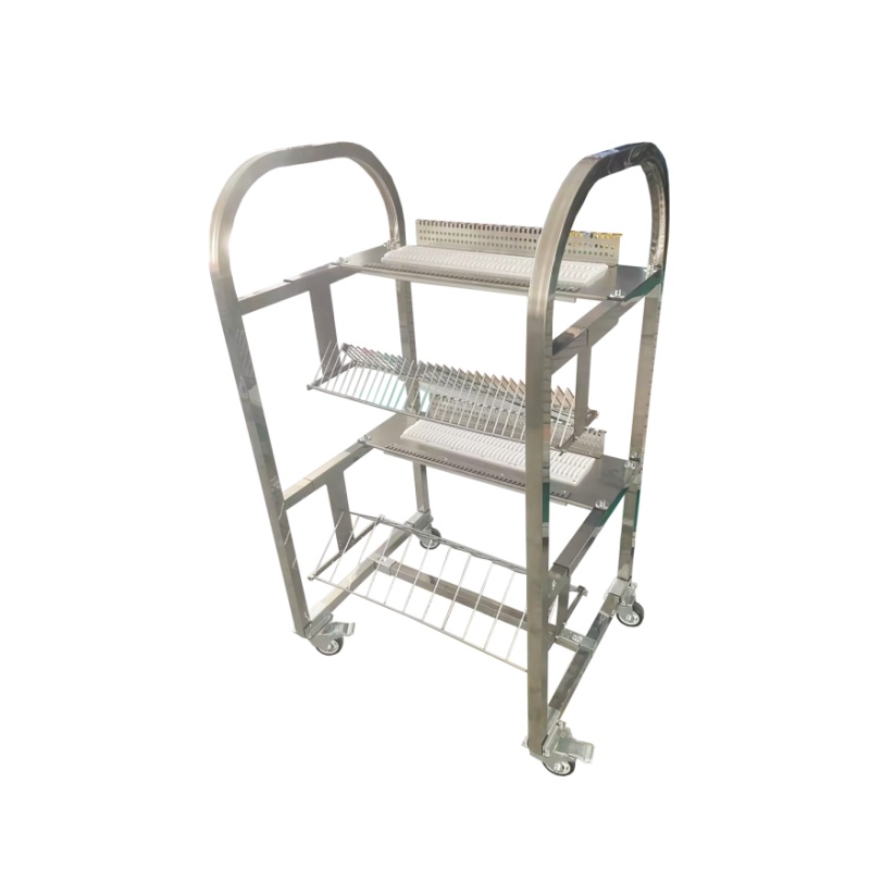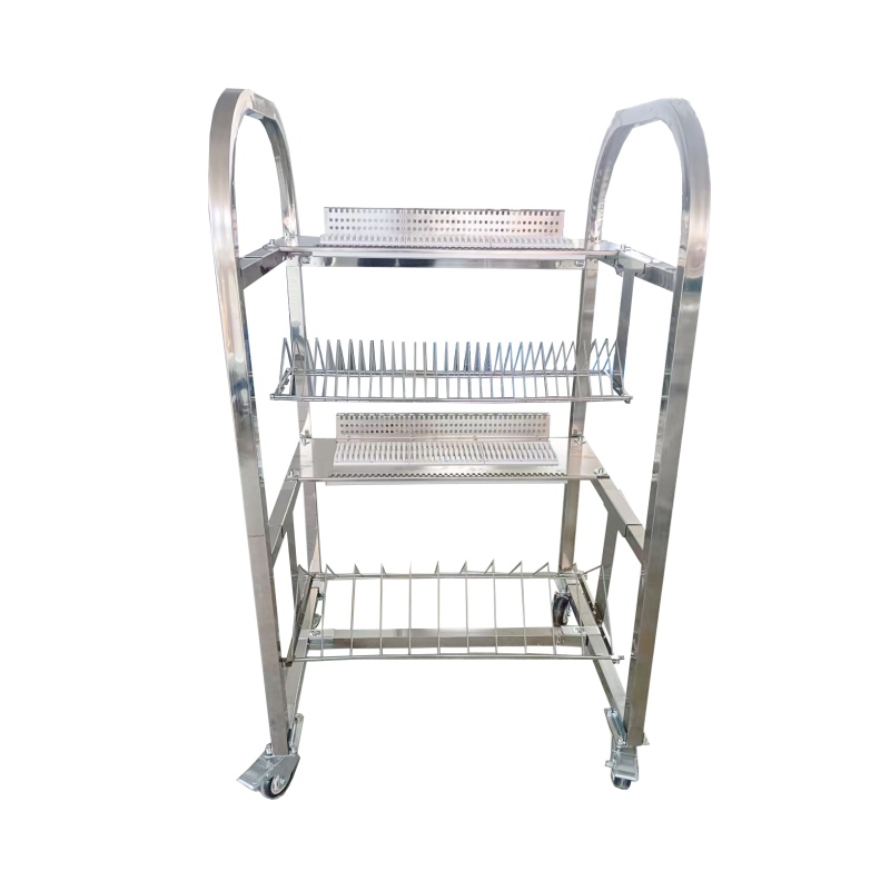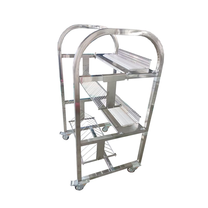 描述:琦琦自動化源頭工廠直供JUKI貼片機飛達車,采用加厚不銹鋼材質,配備帶編號精密放置槽與分層網籃,卡位穩固、存取便捷,支持按需定制槽位與尺寸,高效適配SMT產線飛達管理與周轉。